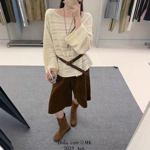 6166【羊绒送腰带】慵懒松弛感镂空一字领上衣小李-不退换