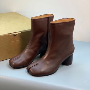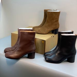 莞产牛货!网红同款真皮粗高跟马丁靴 MM6欧美经典猪蹄分趾短靴女