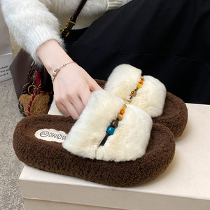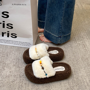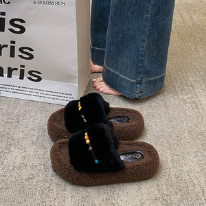 踩屎感毛毛鞋子女2025新款秋冬居家舒适鞋小香风厚底增高一字拖鞋