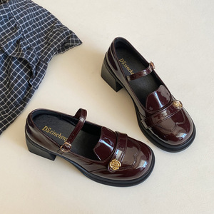 棕色复古英伦风厚底乐福小皮鞋女2025新款夏季配裙子增高玛丽珍鞋