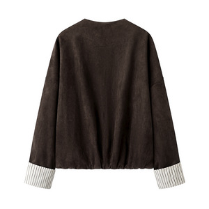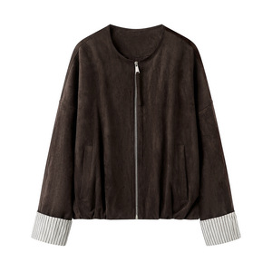 复古宽松短款麂皮绒外套女装2025秋季新款圆领高级感棕色上衣