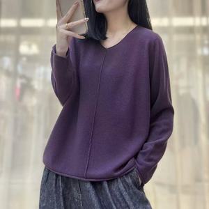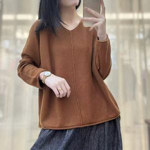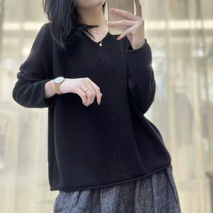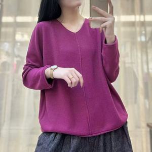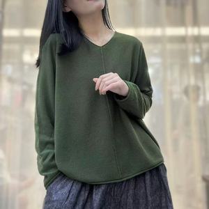 新品休闲百搭简约小V领打底衫舒适慵懒风透气纯色针织衫