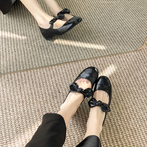 法式复古小香风蝴蝶结玛丽珍鞋女2025新款可爱圆头浅口拼色平底鞋