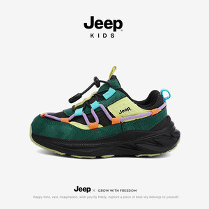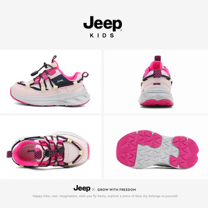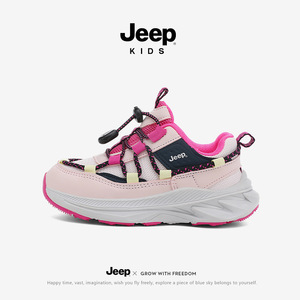 Jeep儿童运动鞋女童透气防滑跑步鞋子2025秋季新款男童网面登山鞋