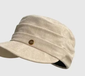 麂皮绒褶皱马术平顶帽女春秋2025新款复古做旧休闲报童帽贝雷帽子