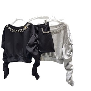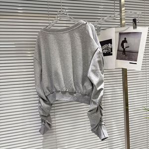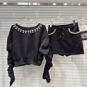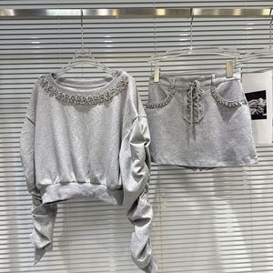 2025秋季新款重工辣妹水钻领边扭扭袖卫衣+绑带短裙套装