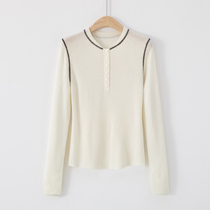 博伟秋冬新款针织开衫女简约线条拼色宽松显瘦圆领套头毛衣设计感