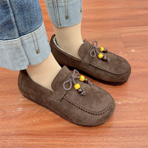 老北京布鞋冬季保暖毛毛鞋一脚蹬休闲鞋平底妈妈鞋乐福鞋时尚女鞋