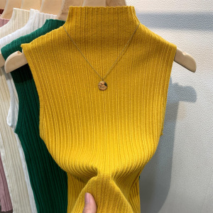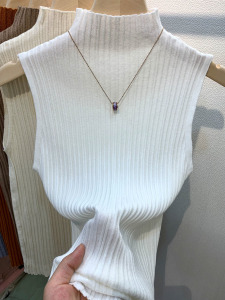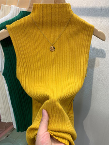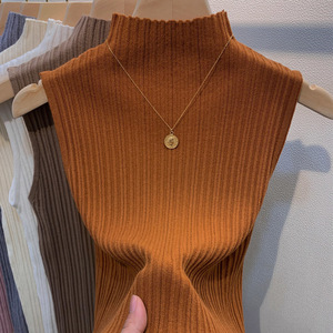 半高领无袖背心大码上衣春修身搭配西装内搭打底衫坑条百搭吊带女