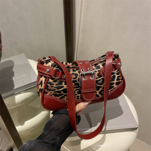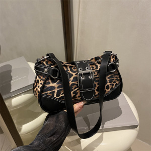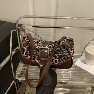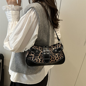 2025休闲拼接设计质感单肩腋下小方包女时尚豹纹韩版秋冬新款潮流