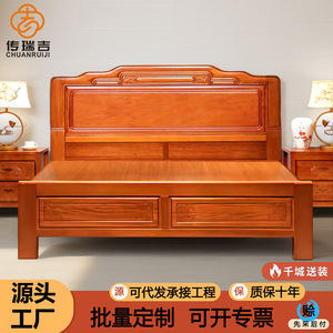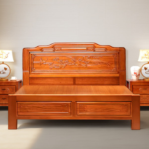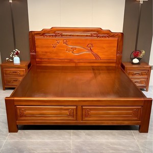 金花梨木实木床1.8米双人床雕花格木大床卧室明清中式古典仿古床