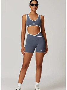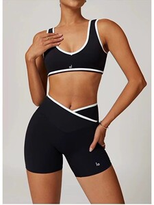 ala欧美撞色女瑜伽服普拉提训练外穿显瘦健身运动套装
