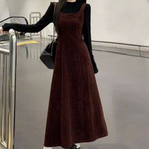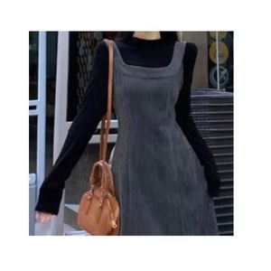 法式复古背带连衣裙套装女秋冬长袖打底衫 A字长裙显瘦两件套串珠