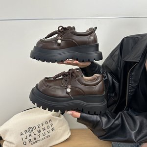 黑色厚底增高显瘦圆头系带小皮鞋女2025秋季新款配裙子日系jk单鞋