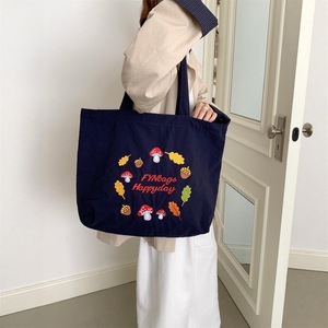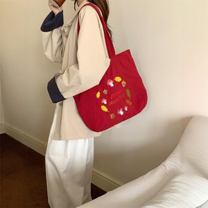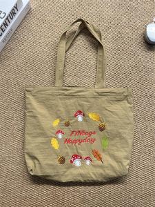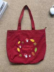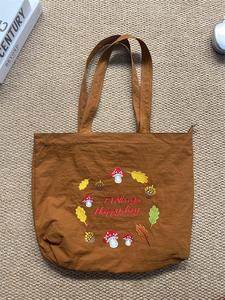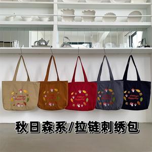韩版刺绣森系复古尼龙托特包热容量刺绣单肩束口包学生上课通勤包