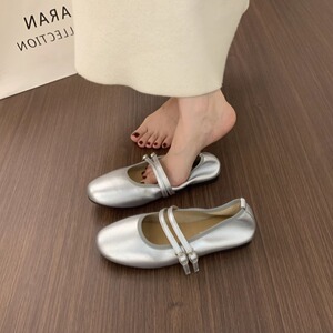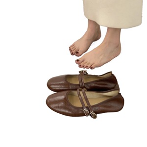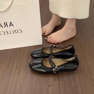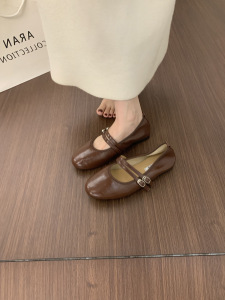 复古圆头晚晚风软皮奶奶鞋一字带平底红色玛丽珍鞋软底芭蕾单鞋女