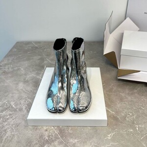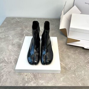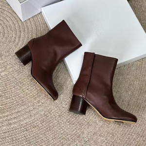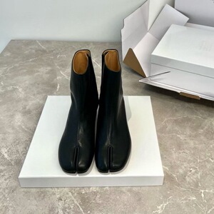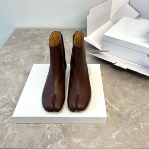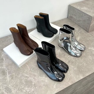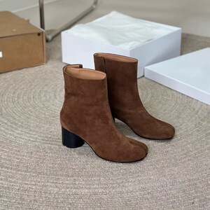 对版 纯原小众秋冬真皮分趾猪蹄短靴女一脚蹬中跟复古切尔西靴子