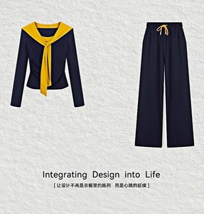 秋季超火韩风休闲时尚套装女洋气减龄假两件长袖上衣阔腿裤三件套