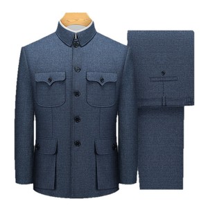 中老年人男士灰色中山装爸爸老年外套装中山服礼服男装唐装两件套