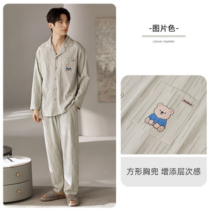 睡衣男款纯棉春秋季长袖2025新款男士全棉条纹家居服男套装可外穿