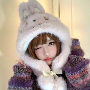 冬季新款加绒加厚拉布布毛绒帽子女保暖防风可爱护耳帽防寒帽子