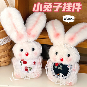 可爱毛绒小兔玩偶挂件围裙吱吱叫兔兔公仔挂饰少女钥匙扣背包挂坠