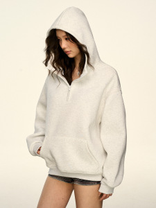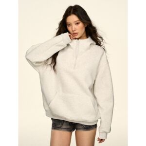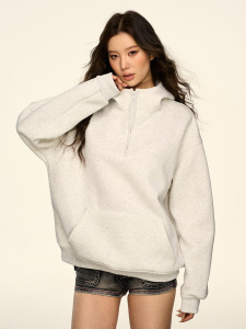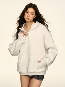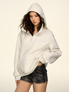 3647# Aaisup灰色半拉链连帽卫衣秋季韩版宽松慵懒百搭套头外套