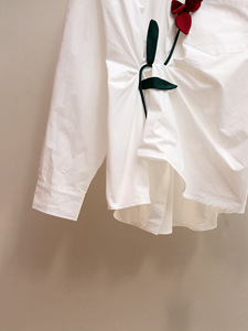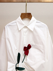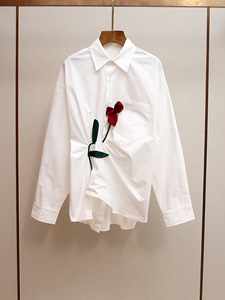 深圳南油高端女装秋季新款法式百搭玫瑰花设计感捏褶翻领衬衫上衣