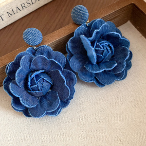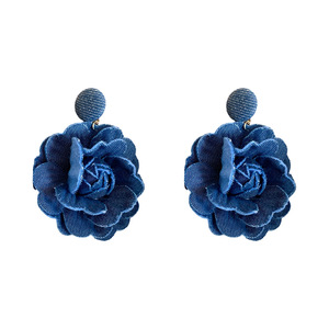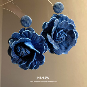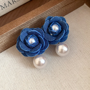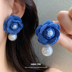 银针布艺珍珠花朵吊坠耳环时尚通勤百搭耳钉小众高级感耳饰批发女