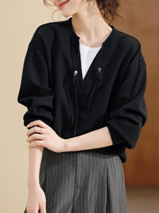 慢享生活2025秋季款时尚简约设计感撞色拼接休闲风宽松圆领卫衣潮