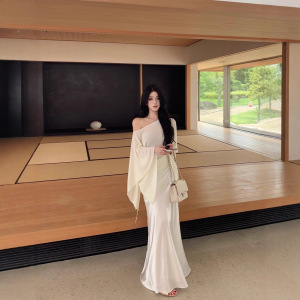 JAYKY YANG叠搭伴侣绵羊毛抽绳针织罩衫一字肩微透披肩上衣女