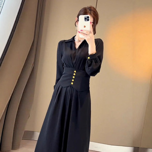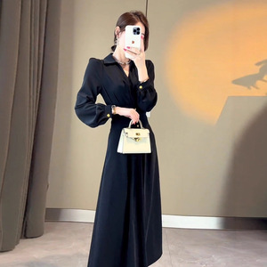 新款气质高个子修身显瘦黑裙2025年春季新款名媛御姐感赫本连衣裙