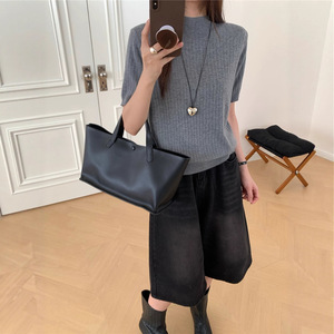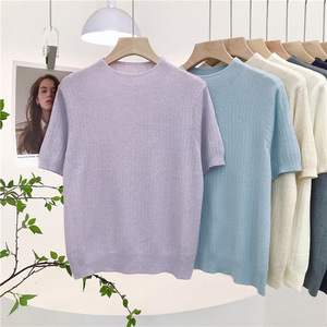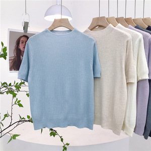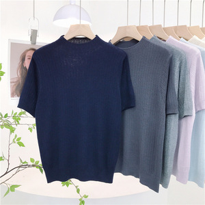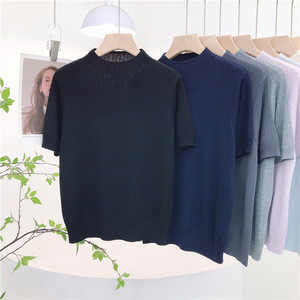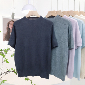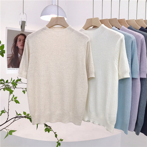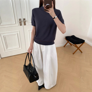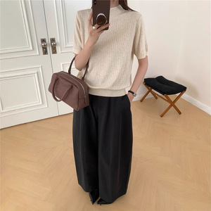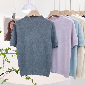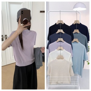 8215半高领打底衫秋冬季羊毛混纺螺纹坑条慵懒五分袖针织衫打底衫