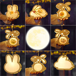 中秋兔子灯笼手工diy制作材料包儿童手提小花灯古风花草自制宫灯