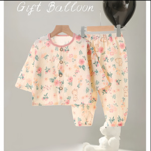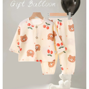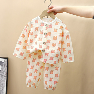 严选双层家居服春秋儿童款睡衣套装A类100棉婴儿衣服纯棉a类套装