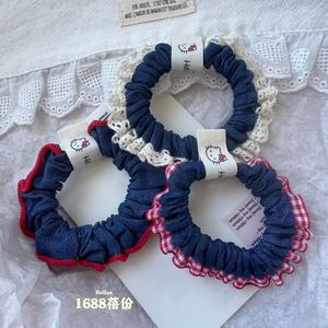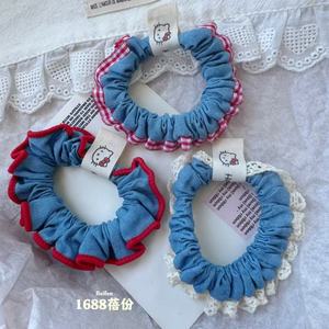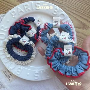 浅蓝牛仔猫咪布标发绳【蕾丝】