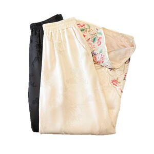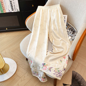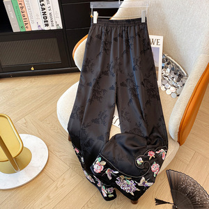 实拍2025夏季新款薄款人丝提花如意头刺绣新中式直筒裤阔腿长裤
