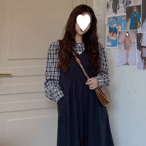 孕妇秋装套装新款韩版宽松时尚格子衬衫休闲背带裙春秋小众两件套
