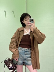 2025早秋新款Pra南油工厂气质休闲知性都市通勤风焦糖色风衣外套