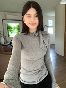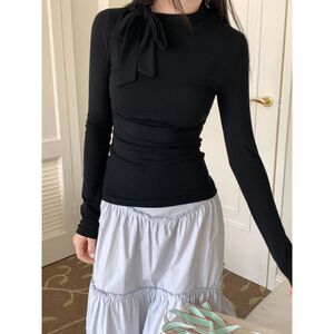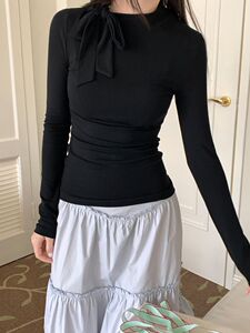 设计感蝴蝶结绑带长袖T恤女夏季2025新款修身显瘦打底衫简约上衣