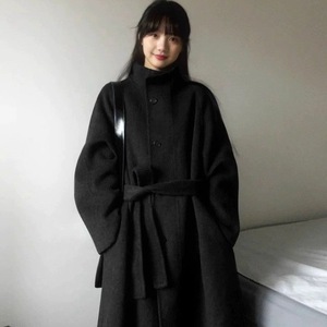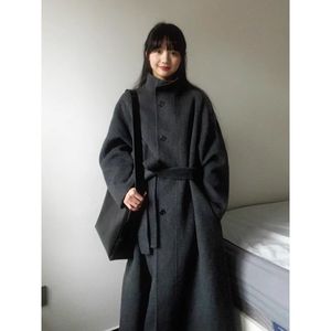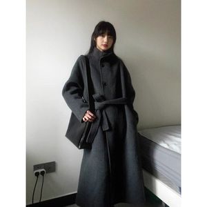 欧美跨境亚马逊灰色感呢子大衣女秋冬季毛呢外套小个子韩系中长款