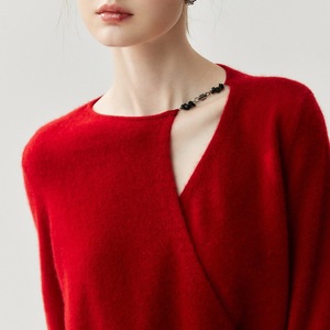 韩系设计感羊绒衫女长袖交叉时尚羊毛上衣新款外穿百搭针织毛衣