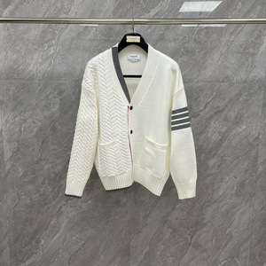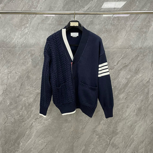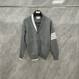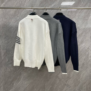 厂家直营TB秋冬季新款金典针织四杠半边麻花V领针织衫男女同款潮