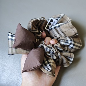 填充棉双蝴蝶结格发圈韩系甜美芭蕾风少女小众潮网红英伦复古可爱