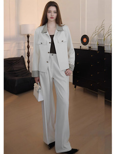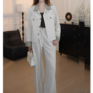 高级时尚套装2025春秋款条纹拼接洋气外套阔腿裤显瘦两件套女代发