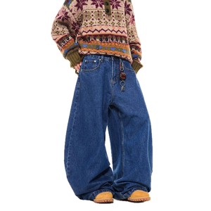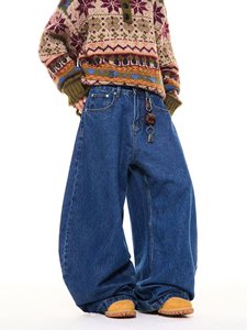 美式复古做旧蓝阔腿牛仔裤女松弛感慵懒风百搭休闲显瘦爵士弯刀裤