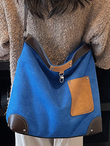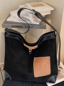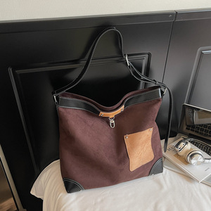 大容量麂皮绒包包女2025秋新款时尚撞色复古水桶包时髦休闲托特包