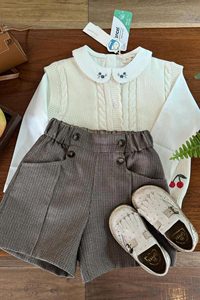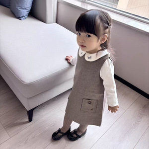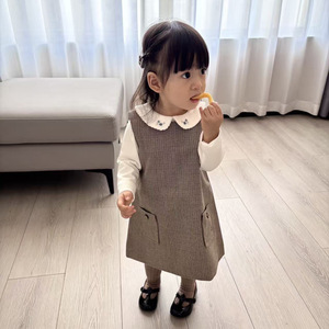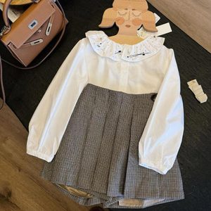 女童套装2025秋季新款甜美儿童刺绣翻领长袖上衣宝宝千鸟格背心裙