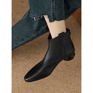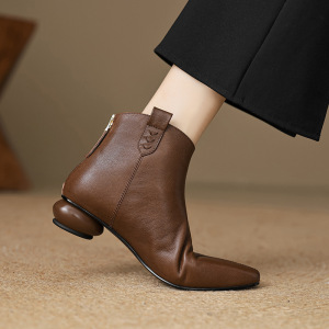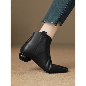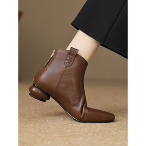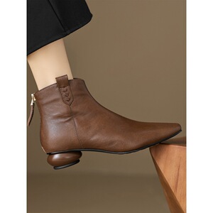 小尖头及踝裸靴秋冬后拉链粗跟中跟短靴百搭巨软单靴女