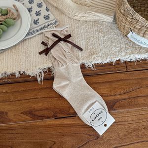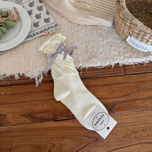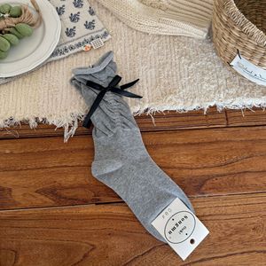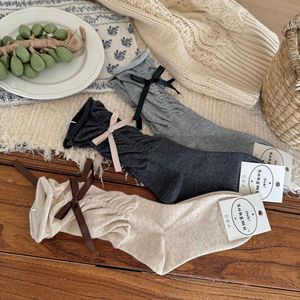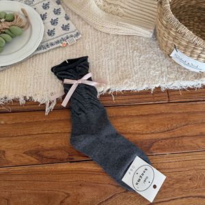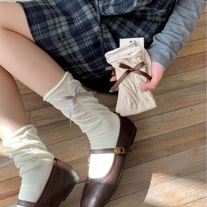 秋冬新款韩系慵懒风泡泡褶皱丝带蝴蝶结仙女澳棉无骨中筒袜